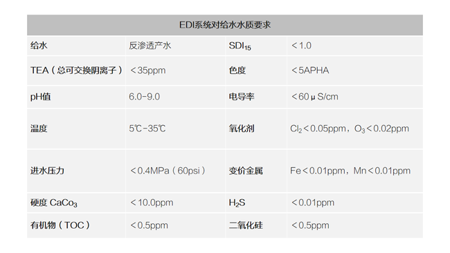 圖一 EDI系統(tǒng)對(duì)給水水質(zhì)要求