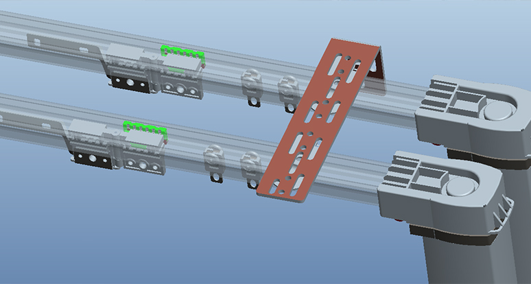???????將卡子旋轉(zhuǎn)90°與軌道銜接完畢,用自攻螺絲將吊裝卡子安裝到頂板(如是混凝土結(jié)構(gòu),需加膨脹鏍絲、電機(jī)接線,電機(jī)與軌道聯(lián)接:將電90°放入主傳動(dòng)箱。(注意:主傳動(dòng)箱的扁形轉(zhuǎn)動(dòng)軸與電機(jī)的接口要吻合)。將電機(jī)順時(shí)針旋轉(zhuǎn)90。旋轉(zhuǎn)到位后,將插片推入傳動(dòng)箱到極限位置會(huì)自動(dòng)鎖住,電機(jī)就與傳動(dòng)箱連接好了。(注意:未接好時(shí)不得通電,以免損壞電機(jī))。