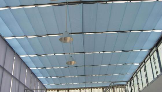 FCS電動天棚簾系統(tǒng)被打開時,遮陽面料呈波浪狀。