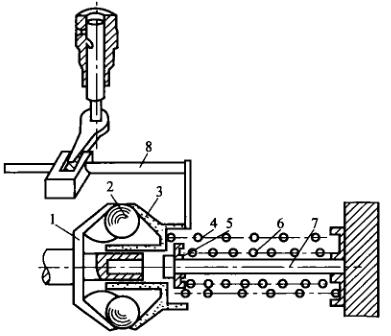 兩極式調(diào)速器如下圖所示為一種兩極式調(diào)速器的工作中電路原理圖。這類調(diào)速器可在二種轉(zhuǎn)速(低速檔和校準(zhǔn)轉(zhuǎn)速)”下起功效。其主要特點是調(diào)速彈簧由二根構(gòu)成,外調(diào)速彈簧4較長,但其剛度較差;內(nèi)調(diào)速彈簧6較短,但剛度強(qiáng)。外彈簧的預(yù)緊力小而內(nèi)彈簧的預(yù)緊力大。在未工作中時兩彈簧中間維持一定距高。除此之外,供油支撐桿8既可由調(diào)速器控制,又可由作業(yè)者立即操縱。