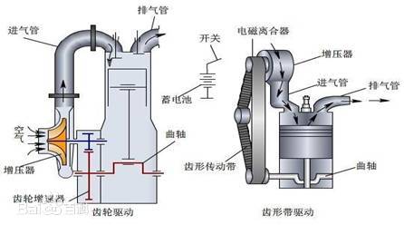 復(fù)合增壓系統(tǒng)有兩種形式: -種是串聯(lián)增壓系統(tǒng),柴油機(jī)的廢氣進(jìn)入廢氣渦輪帶動離心式壓氣機(jī)以提高空氣壓力,然后送入機(jī)械增壓器中再增壓,進(jìn)一步提高空氣壓力后進(jìn)入柴油機(jī)燃燒室中;另一種是并聯(lián)增壓系統(tǒng),廢氣渦輪增壓器和機(jī)械增壓器分別將空氣壓力提高后,進(jìn)入柴油機(jī)燃燒室中。