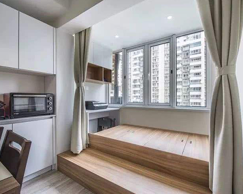 以不影響居住者行動(dòng)為準(zhǔn)則,作柜子或屏風(fēng)為諱飾,總之即是不要讓陽(yáng)臺(tái)直通廚房即可。?