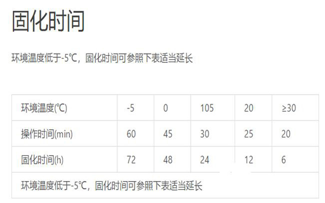 對(duì)于施工環(huán)境上,如高溫和低溫的情況下有良好的耐溫性,可在最低固化溫度-5℃中,環(huán)氧型安裝時(shí)間25-30分鐘,固化時(shí)間12小時(shí);在高溫度上可以達(dá)到30度以上施工都是可以的。
