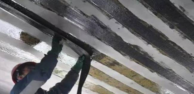 (2)基底處理,即為了使其達到碳纖維加固的要求,對混凝土表面進行處理。應(yīng)該將凸起的部分利用混凝土打磨機磨平,如果混凝土表面有凸起的部位;對裂縫部位應(yīng)該進行封閉處理,如果出現(xiàn)裂縫;如果混凝土有水漬或表面潮濕,保持混凝土表面的干燥,應(yīng)該用吹風(fēng)機將其吹干。