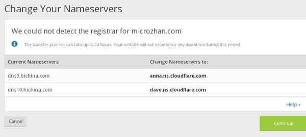 如我現(xiàn)在使用的是萬(wàn)網(wǎng)域名,我的域名解析服務(wù)器是"dns9.hichina.com",現(xiàn)在需要將服務(wù)器修改為cloudflare服務(wù)器。