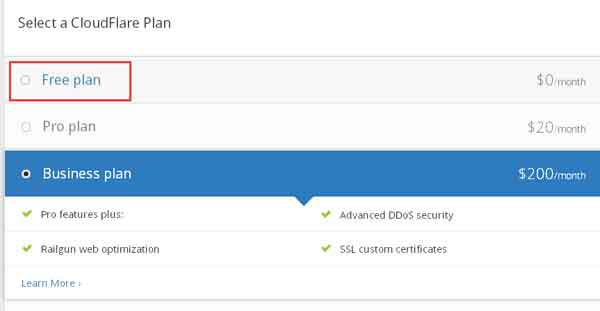 4,選擇"free plan",使用免費(fèi)版本的cloudflare