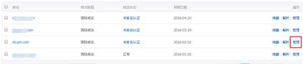 需要到萬(wàn)網(wǎng)后臺(tái)去修改,這里需要注意的是:不是增加或者修改解析條目,而是修改解析服務(wù)器。所以在萬(wàn)網(wǎng)后臺(tái)選擇的是"管理"而不是"解析"