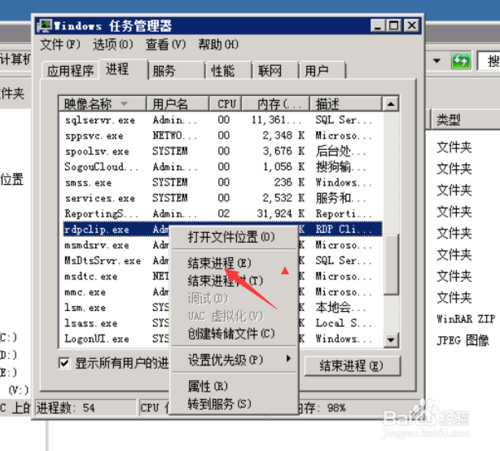 2.在任務(wù)管理器中查找是否有進(jìn)程rdpclip.exe。