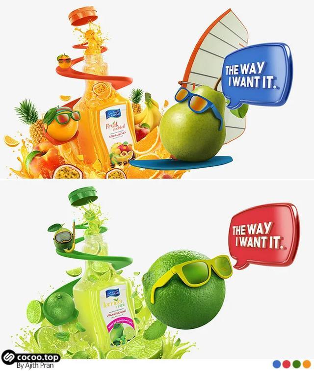 例如:畫(huà)面中利用黃色與藍(lán)色的對(duì)比使得畫(huà)面色彩更加豐富跳躍烈的對(duì)比效果更突出畫(huà)面中的主題產(chǎn)品;紅色與藍(lán)色的組合搭配起到了吸引眼球的作用,紅色的主體物在藍(lán)色背景的烘托下更為醒目,對(duì)比色相的配色方式令主題在表現(xiàn)上更加跳躍強(qiáng)烈。