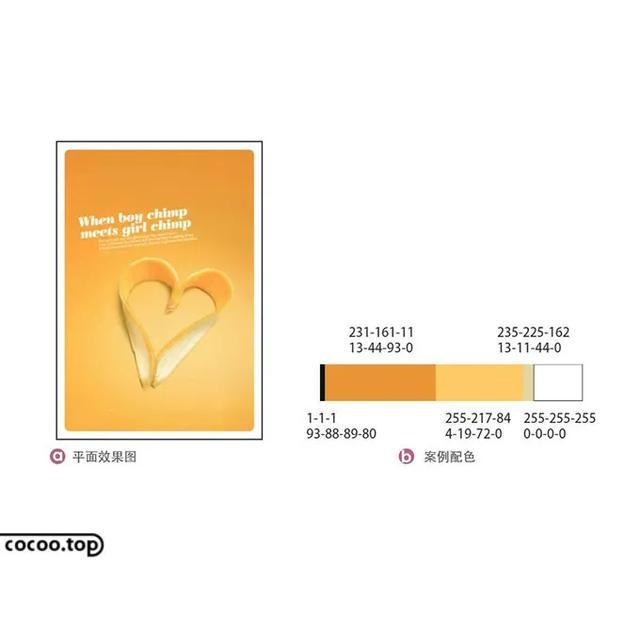 例如:畫(huà)面中采用黃色為主,為避免畫(huà)面顯得單調(diào),設(shè)計(jì)師在色彩的明度與純度上做變化,使得畫(huà)面在整體統(tǒng)一的格局下具有節(jié)奏感與層次感。