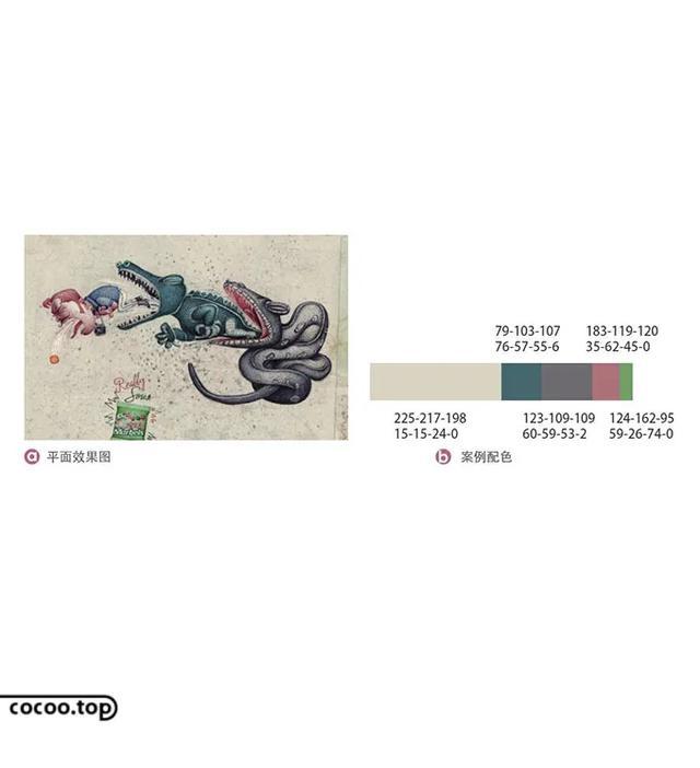 再如:畫(huà)面以中純度的粉紅色、黃色、綠色進(jìn)行搭配,大面積暖色調(diào)的應(yīng)用給畫(huà)面營(yíng)造了溫馨感,使色彩的運(yùn)用與實(shí)體更為貼切;色彩中純度的搭配給人溫馨、可愛(ài)、平緩、舒適的視覺(jué)效果。