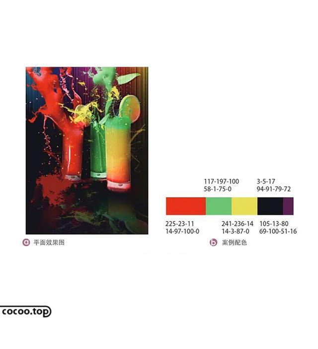 例如:多個(gè)互補(bǔ)色相配色形式令畫(huà)面呈現(xiàn)出豐富飽滿的視覺(jué)效果;紅與綠、黃與紫、橘與藍(lán)的搭配方式令畫(huà)面在視覺(jué)上更具震撼力。