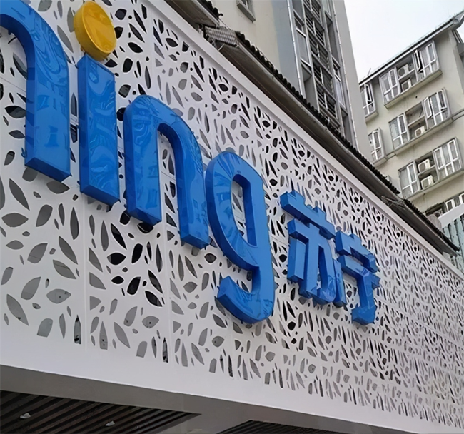 大多數(shù)門頭由底板和立體字構(gòu)成,底板的材質(zhì)有鋁塑板,鋼板烤漆,鋁板烤漆,生態(tài)板,銹鋼板,鐵絲網(wǎng),鋁單板,異型切割金屬板,三維扣板,條形扣板等,當(dāng)然還有經(jīng)過各種特殊工藝處理的底板,立體字則根據(jù)底板材質(zhì),選用合適的形式,或者背發(fā)光,或者內(nèi)發(fā)光,還有更多的發(fā)光字類型。