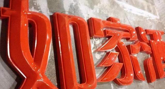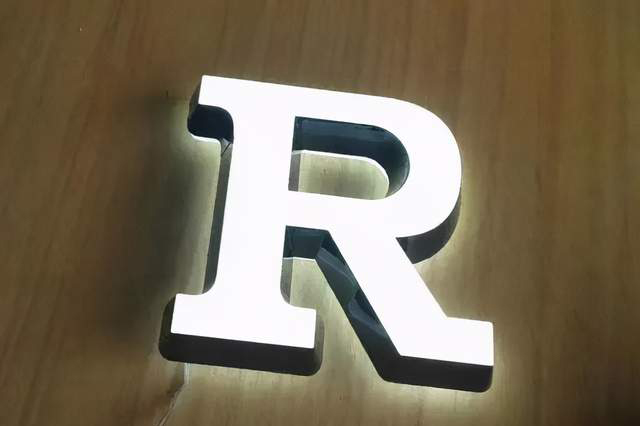 正面及側(cè)面成直角,正面發(fā)光。一般用3mm透光亞克力板做正面,鐵皮烤漆圍邊及做底,制作工藝和方法與通體發(fā)光字基本一致。