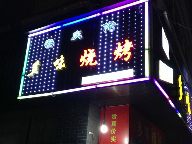 3.門頭廣告制作材料的選取;材質(zhì)主要有LED顯示屏、亞克力板和噴繪布,材料的選擇主要是從以下兩方面著手,一方面依據(jù)店鋪經(jīng)營的產(chǎn)品類別選取,這樣性價比高,另一方面,根據(jù)周邊的環(huán)境來選擇,選擇合適的材質(zhì)比較適宜。