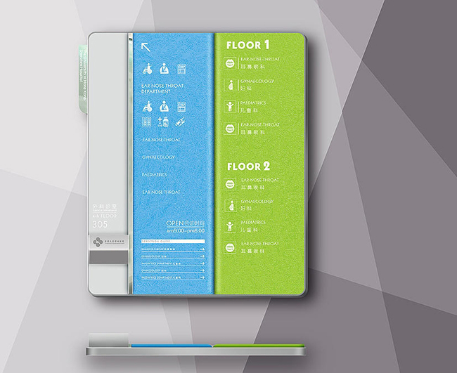 三級標(biāo)識導(dǎo)向:安裝在各樓層電梯間、電梯內(nèi)、樓梯口、功能區(qū)域口的樓層內(nèi)容及區(qū)域內(nèi)容,主要使就診者進(jìn)一步明確所在區(qū)域是否正確。