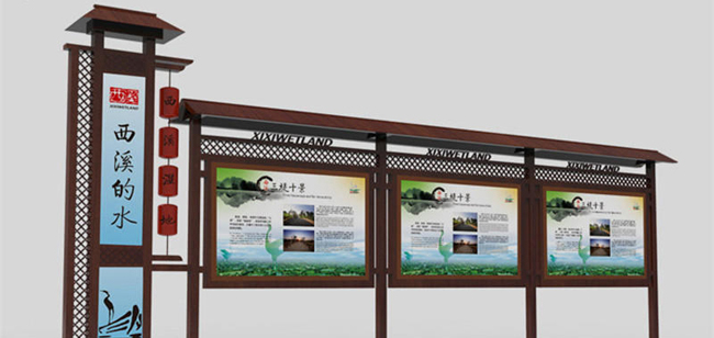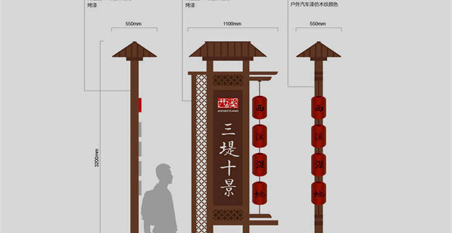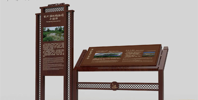 景區(qū)標識系統(tǒng)整體運用精湛工藝結(jié)合傳統(tǒng)裝飾圖案進行裝飾,加深對游客的印象。