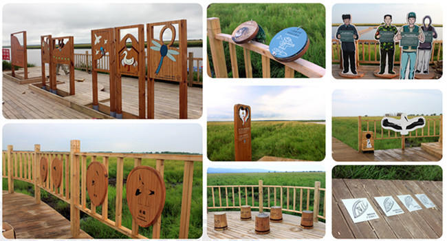 在這些原則的指導(dǎo)下設(shè)計(jì)的自然保護(hù)區(qū)旅游標(biāo)識(shí)牌能滿足游客的需求,也能體現(xiàn)保護(hù)區(qū)的功能,這在三江國(guó)家級(jí)自然保護(hù)標(biāo)識(shí)牌的設(shè)計(jì)上得到很好的體現(xiàn)。如三江國(guó)家級(jí)自然保護(hù)區(qū)在標(biāo)識(shí)牌設(shè)計(jì)時(shí)標(biāo)牌的材料選擇了當(dāng)?shù)氐哪静呐c環(huán)境很好的融合,且重點(diǎn)強(qiáng)調(diào)了對(duì)環(huán)境解說牌和珍惜動(dòng)植物解說牌的設(shè)計(jì),彰顯了當(dāng)?shù)氐膭?dòng)植物特色,提升了保護(hù)區(qū)的教育功能,也推廣了保護(hù)區(qū)的形象。