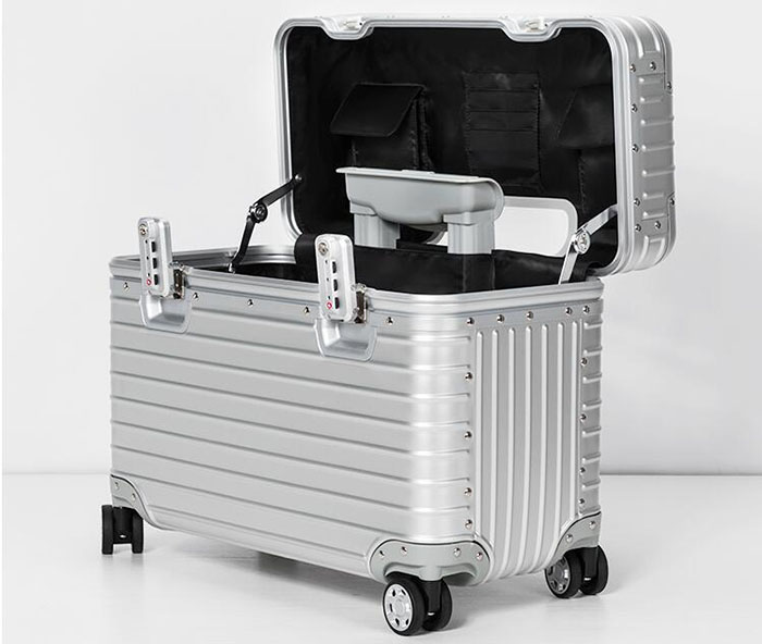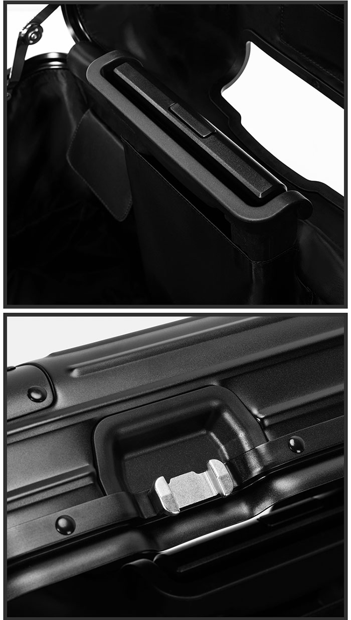 蓋子內(nèi)的設(shè)計(jì)可將物品分門門別類;內(nèi)部空間層次有序;堅(jiān)固的鋁合金外殼、順暢的滑輪。
