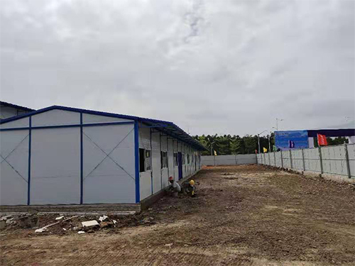 活動(dòng)板房屋面板應(yīng)安裝平穩(wěn)、檐口平直,板的搭接方向正確一致.附著式墻板安裝應(yīng)排板正確,表面平整;嵌入式墻板安裝應(yīng)平整,上下搭接縫應(yīng)采用企口縫,外側(cè)板應(yīng)向下搭接,搭接長(zhǎng)度不小于15mm.