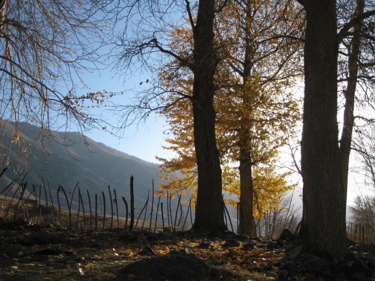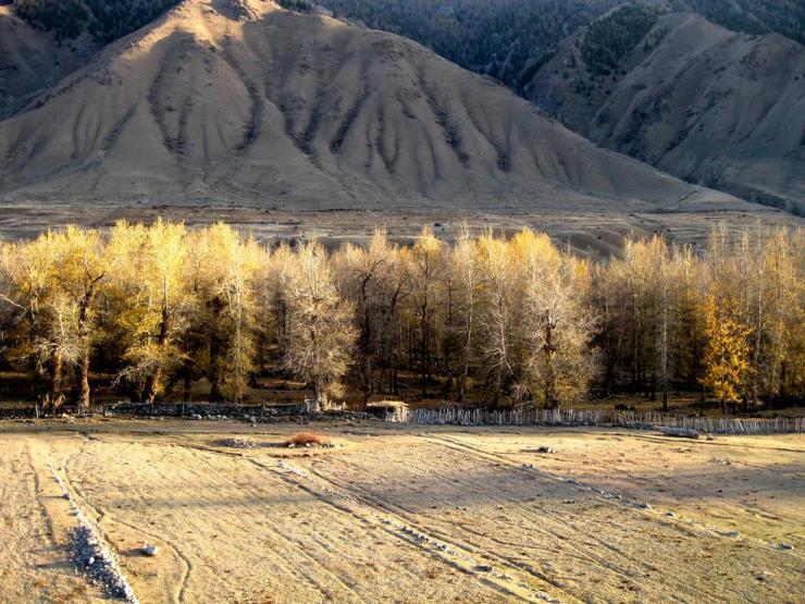 春去秋來(lái)誰(shuí)也擋不住年輪的腳步,我喜歡那里的秋色,每當(dāng)看到云騰薄霧與那道渺渺炊煙交織在一起時(shí),不由得使我想起了牛糞烘烤出來(lái)的熱氣騰騰馕,那份清香一直在我腦海里揮之不去之時(shí),我這才發(fā)現(xiàn)我的伊甸園就在這里.