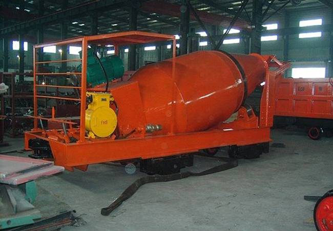 礦用防爆型設(shè)計的輸送車,是用于含有煤層的鐵路隧道、國防工程、水工涵洞、地下礦山等平巷掘進(可通過斜井下放)的混凝土攪拌輸送設(shè)備。軌輪式電動混凝土攪拌罐車亦有非防爆型。