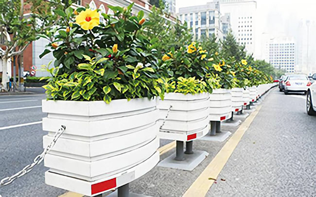 道路花箱就是放置在道路中間和道路兩旁人行道起到隔離交通,防止車道變道亂行,規(guī)范交通秩序的作用,pvc道路花箱,具有護(hù)欄功能的花箱,極大地避免了交通意外事故的發(fā)生,還提高了城市景觀。城市綠化的覆蓋率,改善了城市道路環(huán)境空氣質(zhì)量。道路花箱的使用,加快了城市生態(tài)文明建設(shè)的節(jié)奏,在如今城市綠化不足,平地土地面積資源過(guò)量占用。改變平地綠化種植方式和道路護(hù)欄傳統(tǒng)思維,通過(guò)建設(shè)道路花箱,涵蓋了綠化種植與護(hù)欄的作用,一舉兩得。