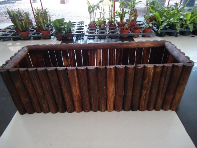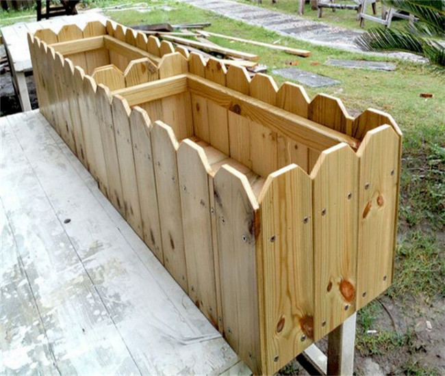 實木花箱顧名思義就是用的普通實木,實木花箱較易加工,款式也非常漂亮,但在戶外,未經處理的實木不具備防腐性能,使用壽命較短,一般將實木花箱放在屋內或者露臺能遮雨的位置,而且為了保證實木花箱的使用壽命通常在花箱內部放上防水材料,比如防水布、鋁板等材料。