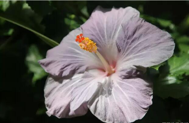 一般常見的扶桑花都是很易認(rèn)的,它有著五片薄薄大花瓣,多數(shù)是鮮紅色,也有粉紅、白色,其他也有黃色、杏色等顏色,也有些有深色花心,因此是雙色。