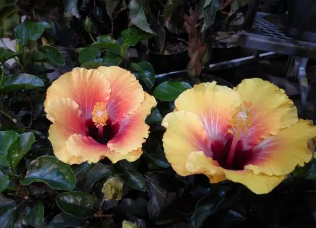 還有一種黃色花瓣,花朵較小,但有深色花心的品種,叫做黃槿”,它們都是長在海邊的,在南亞可以隨處看到,非常粗生,完全不怕土壤偏堿,也不怕強(qiáng)風(fēng)吹。非常耐生長,不過花朵很快凋謝,這花也是只有一天壽命,但在傍晚要謝時,會轉(zhuǎn)為橙紅色才凋謝。