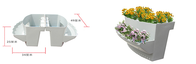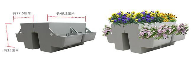 鞍馬式PP花盆尺寸:49厘米(長)×34厘米(寬)×25厘米(高)護(hù)欄綠化鞍式花盆,安裝說明: