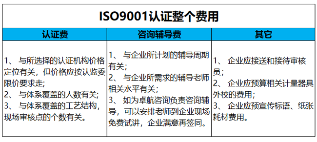 以上就是企業(yè)申報(bào)ISO9001認(rèn)證費(fèi)用需要支付的相關(guān)費(fèi)用明細(xì)表啦。