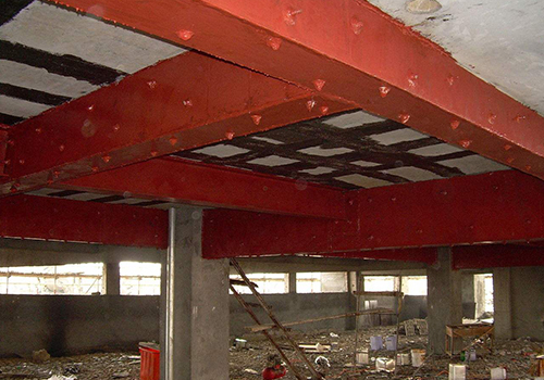 三、框架梁的加固方法 在支撐梁的兩端柱上加鋼筋混凝土柱帽,在搗混凝土柱帽時(shí)在柱帽里預(yù)埋鋼板,等柱帽的混凝土養(yǎng)護(hù)期到了規(guī)范的時(shí)間了,將滿足要求的工字鋼直接與柱帽上鋼板焊接成為一個(gè)整體,工字鋼上邊直接抵梁的下口。 四、碳纖維布加固法 在需要加固的地方,粘貼悍馬碳纖維布進(jìn)行加固,現(xiàn)在是用的最多的加固方法。? |