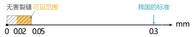 在正常使用荷載作用下,鋼筋混凝上結(jié)構(gòu)一般是帶裂縫工作的,一般肉眼可見的裂縫范圍為0.02- 0.05mm,裂縫寬度小于0.05mm 的屬無害裂縫,對防水、防腐蝕與承重的影響均可忽略不計。