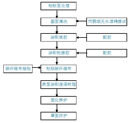 (1)施工前必須有碳纖維及其配套膠料廠家所提供的材料檢驗證明,要對碳纖維布的規(guī)格、材質(zhì)及各種膠的品種、規(guī)格和質(zhì)量進行檢驗檢測,對不合格材料不得使用。