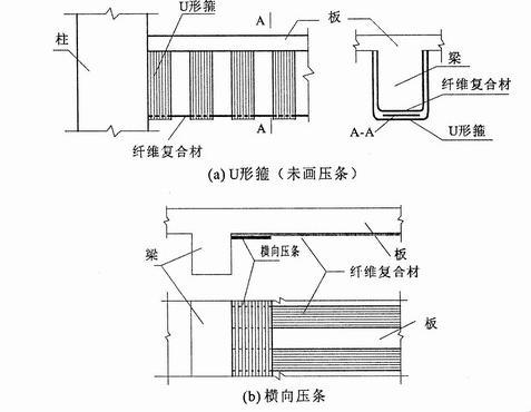 (2)粘貼纖維復合材加固法加固鋼筋混凝土結(jié)構(gòu)時,由于纖維復合材的抗拉強度好,和抗壓強度弱的特點,應把纖維復合材設計為只承受拉應力作用。