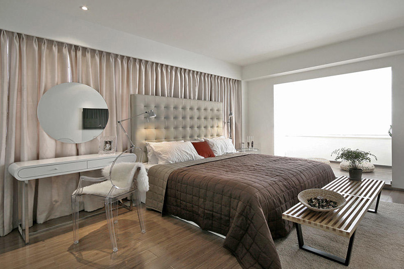 酒店臥室設(shè)計主要以白色和灰色為主調(diào),極具現(xiàn)代感,一個清新優(yōu)雅的開放式的室內(nèi)空間。新鮮的感覺,照亮了整個空間,這里是經(jīng)過漫長的一天后,休息和享受生活的地方.