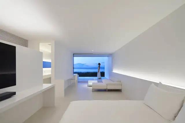 2、極簡風(fēng)格酒店設(shè)計的顏色選用上通常被人們冠以性冷淡風(fēng)的印象,因此顏色一般選擇是飽和度低的顏色與偏冷的色調(diào)。一般而言,黑白灰是極簡風(fēng)格中使用最廣的顏色,而其他的原木色因貼近自然清新也是被人們大為推崇。