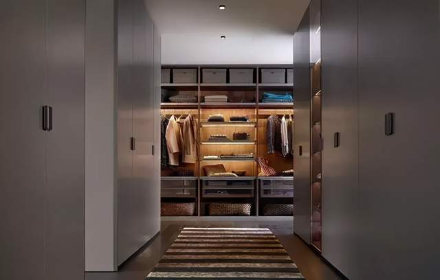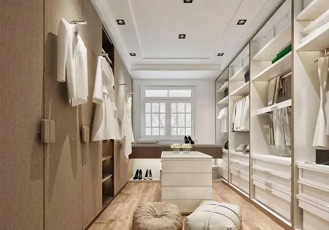 步入式衣帽間的設(shè)計(jì)要“以人為本”講究珍藏機(jī)能的公道化和人道化。更衣間內(nèi)部主要由板材拼裝而成,盡管工藝并不復(fù)雜,但做好也并非易事。