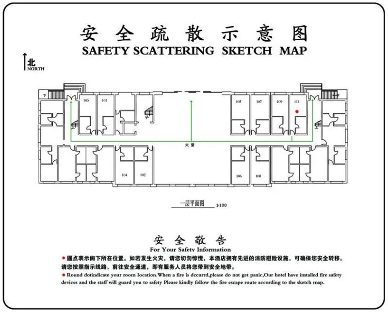 還需強(qiáng)調(diào)的是:酒店動(dòng)線設(shè)計(jì)要嚴(yán)格遵守酒店建筑消防安全規(guī)范。把“安全第一”作為酒店流線設(shè)計(jì)的重中之重。為了防火防災(zāi)、消除隱患、便于疏散人群,在建筑防火分區(qū)、房間內(nèi)外距離、安全逃生門的安裝和開啟方向,以及疏散指引、疏散通道的設(shè)計(jì)上都要按相關(guān)法律法規(guī)進(jìn)行規(guī)范設(shè)計(jì),滿足緊急情況下人員迅速開啟、快捷疏散的需要。