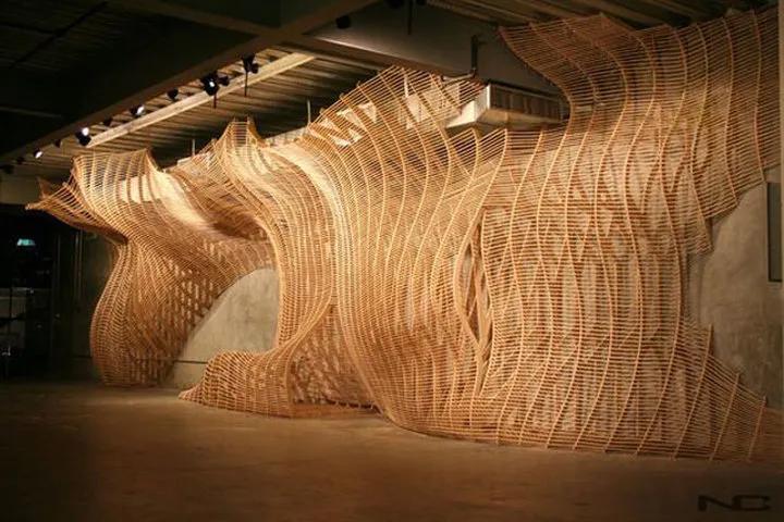 與自然主題和綠色元素相關(guān)的是弧形線條和有機(jī)的形狀,而現(xiàn)在參數(shù)化設(shè)計(jì)和數(shù)控雕刻技術(shù)使創(chuàng)建這些復(fù)雜的三維曲面成為可能,而數(shù)控打印技術(shù)讓平面圖案打印在各種材料上變得輕而易舉。
