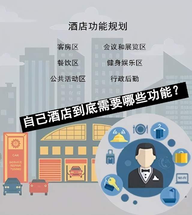 酒店的功能決定著您的利潤(rùn),功能好比人的五臟六腑,功能組織得合理,他就能發(fā)揮最佳經(jīng)濟(jì)效益,功能并不是大而全就好,功能的大小要看周邊的市場(chǎng)、酒店所在區(qū)域。比如:客房的數(shù)量、酒店自身的條件等。
