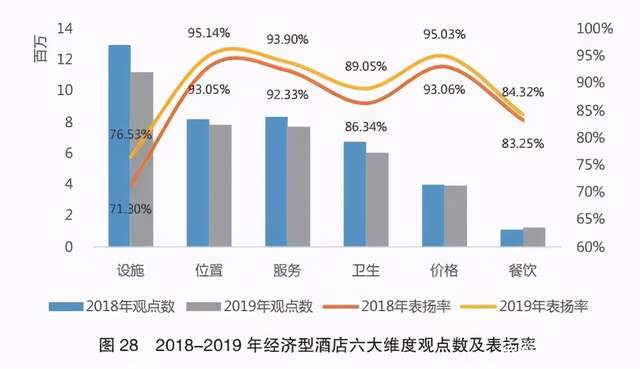 報(bào)告中分別針對(duì)豪華型酒店、高端型酒店、中端型酒店、經(jīng)濟(jì)型酒店、非標(biāo)準(zhǔn)型酒店分別做網(wǎng)絡(luò)口碑分析。報(bào)告指出,中端酒店日益重視品牌化經(jīng)營(yíng),從而酒店經(jīng)營(yíng)者在網(wǎng)絡(luò)口碑管理中投入更多的精力。2018年到2019年期間,中端酒店飽受商務(wù)出差人士的青睞。出差型用戶對(duì)中端酒店的設(shè)備、人性化服務(wù)、餐飲等增值服務(wù)方面傾心。