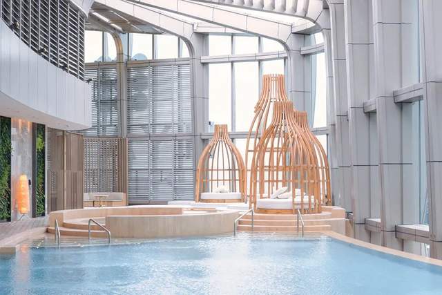 天涯海角之畔、三亞城中之巔。頂層露天泳池將波浪、漩渦等意向具化為大大小小的圓,打破泳池固有的方正呆板形象。