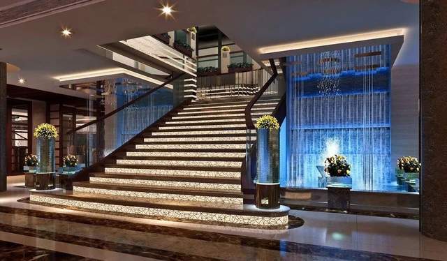 瀑布激昂轟鳴,給人以感染,并能有效地分隔兩側(cè)的聲音,虛化環(huán)境聲響,它廣泛用于大型酒店室內(nèi)空間水景設(shè)計(jì)中。