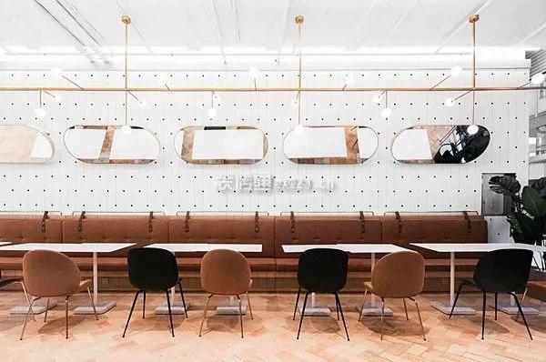 ②餐飲店的隔斷一般選用一些展示架或裝飾品屏風(fēng)等不明顯的隔斷,既區(qū)分了空間,在一定程度上提升了美觀度,同時也不會讓空間看起來很密閉。