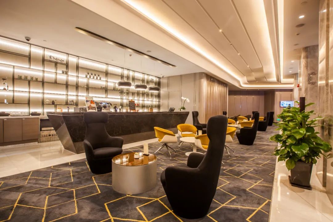 酒店酒吧內(nèi)照明強度要適中,吧臺后面的工作區(qū)和陳列部分要求有較高的局部照明,以吸引人們的注意力并便于操作(照度在0-320lx),酒吧臺下可設(shè)光槽對周圍地面照亮,給人以安定感,室內(nèi)環(huán)境要暗,這樣可以利用照明形成趣味以創(chuàng)造不同個性。吧臺部分作為整個酒吧的視覺中心,要求較高,除了操作的照明外,還要充分展示各種酒類和酒器,以及調(diào)酒師優(yōu)雅嫻熟的配酒表演,從而使顧客在休憩中得到視覺的滿足,在輕松舒適的氣氛中流連忘返。