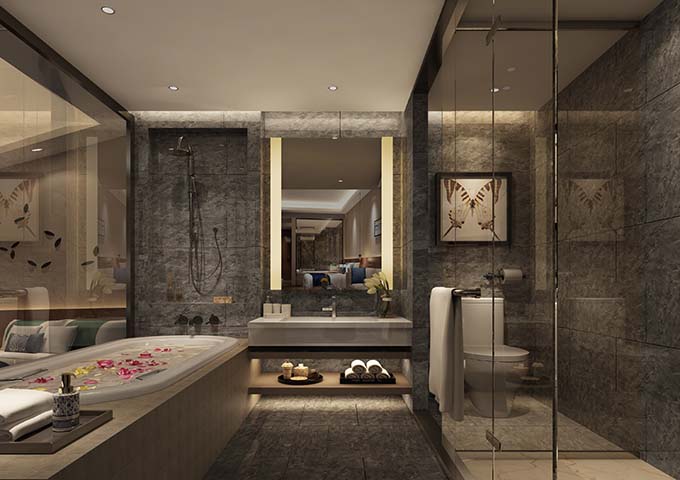 關(guān)于酒店內(nèi)部設(shè)計(jì),著重在客房和餐廳。客房能夠說是酒店對商務(wù)客人傳達(dá)信息最直接的中央。房間的溫馨度,便當(dāng)快捷度都直接構(gòu)成了客人對酒店的印象。目前,酒店客房的開展趨向是客房和衛(wèi)生間的面積加大。寬闊的房間能使人心胸開闊、呼吸酣暢,飯店在合理規(guī)劃的同時(shí),要逐漸開展大空間、大客房的趨向,屋頂?shù)母叨仍O(shè)計(jì)也隨之逐步加高,充沛給予客人足夠的空間感,在溫馨度的根底上再度進(jìn)步一個(gè)層次。
