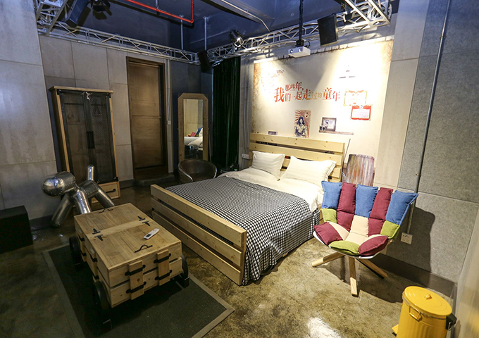 如瑪利亞酒店推出的史前山頂洞人房,抓住”石”做主題性文章,利用天然的巖石做成地板、墻壁和天花板,房間內(nèi)還掛有瀑布,而且沐浴噴灑由巖石制成,浴缸也是石制的。