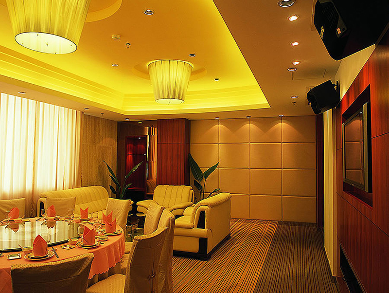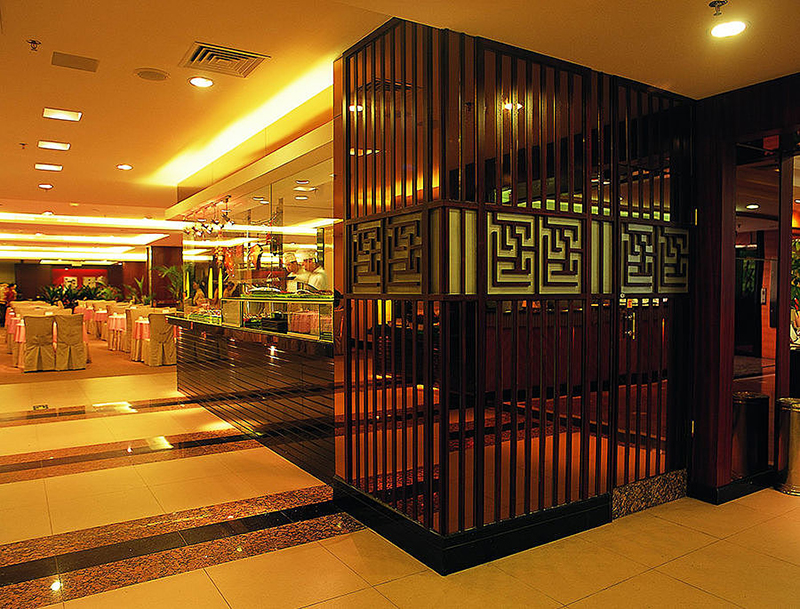 本案是位于廣州越秀山下的一間粵菜酒家之宴會廳及廂房的翻新改造設計,為了能夠用有限的資金達到煥然一新的動人效果,設計者在布局及裝飾設計上都采用了簡約的手法。去除多余的、凌亂的空間及造型,一面塊、材質(zhì)、色彩之間的恰當比例實現(xiàn)整體的協(xié)調(diào)。配合燈光及細部造型圖案的點綴,創(chuàng)造出一種意境、氣氛,使整個空間設計既有簡潔現(xiàn)代,又有文化傳統(tǒng)的風韻。在設計中,設計者把原開在大廳一側(cè)墻面的廂房門口改開在走廊一側(cè),使大廳更規(guī)整,利用率也更高,同時也消除了廂房與大廳之間的相互干擾。在主壁造型的處理中設計師運用了喜慶的紅色襯托富有寓意的木造型格柵屏風,配合暗藏光源及兩側(cè)中式燈籠的映襯,表現(xiàn)出一種極其穩(wěn)重、熱烈而不夸張的喜慶氣氛,在簡約的大廳中成為一個突出的亮點。另外,在頗有現(xiàn)代特色的大廳橢圓形柱子中鑲嵌著具有中式傳統(tǒng)紋樣的青綠色玻璃,玻璃內(nèi)部藏有燈光。大面積的紅褐色與細部青綠色之間的對比、流暢的整體空間造型與細部的紋路處理等,都體現(xiàn)了對比與協(xié)調(diào)、簡約而不簡單的原則。